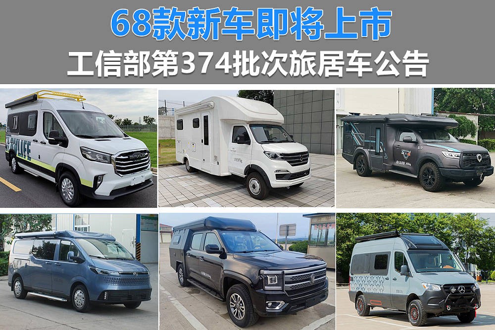 在第374批《道路机动车辆生产企业及产品公告》新产品公示中,涉及旅居车、旅居挂车共计68款,此次公告中C型房车多达35款、B型房车30款、A型