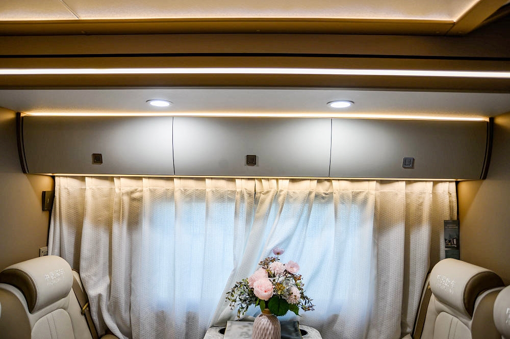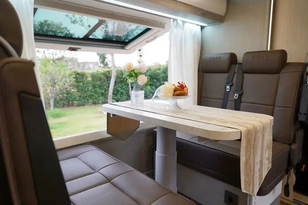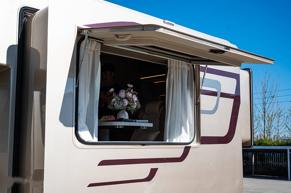 结构创新不止于表面,源于对创新不断探索,在常规侧拓展结构中内嵌大型上掀式观景窗,为会客区宽阔的视野和充足的阳光。笔者亲身体验过后,毫不夸张地说真的令我心旷神怡,在户外驻停时,一边欣赏秋日美景,一边与家人朋友闲聊,享受午后悠闲时光。