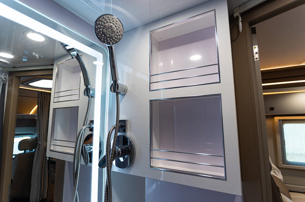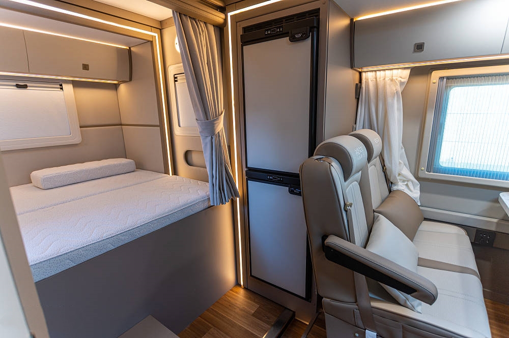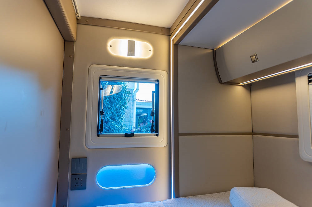 采用专利可伸缩侧拓展卫浴间,相比于固定式卫浴区,这种伸缩结构无疑在防水防潮等问题上更具难度,也从侧面印证了厂家在结构设计。密封以及制造精度上的领先优势与丰富经验。