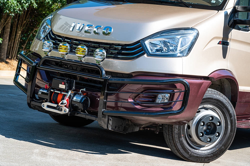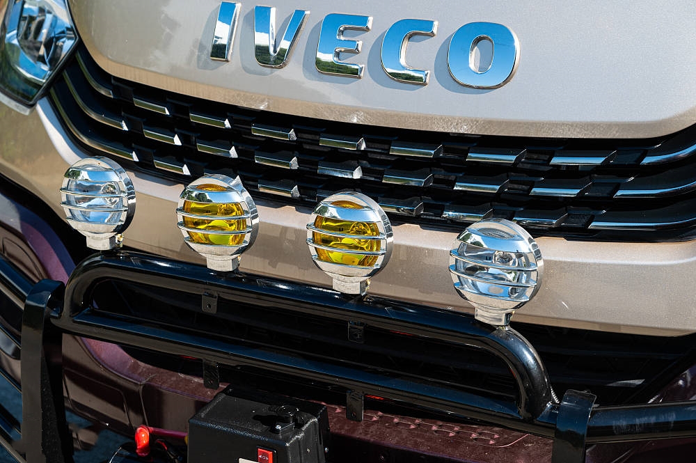 前脸在原有依维柯家族化设计特征基础上并未做太多改变,横向的镀铬饰条与大灯相连对于延展车头的视觉宽度起到了不错的效果,搭配简洁有力的前大灯组更加炯炯有神。