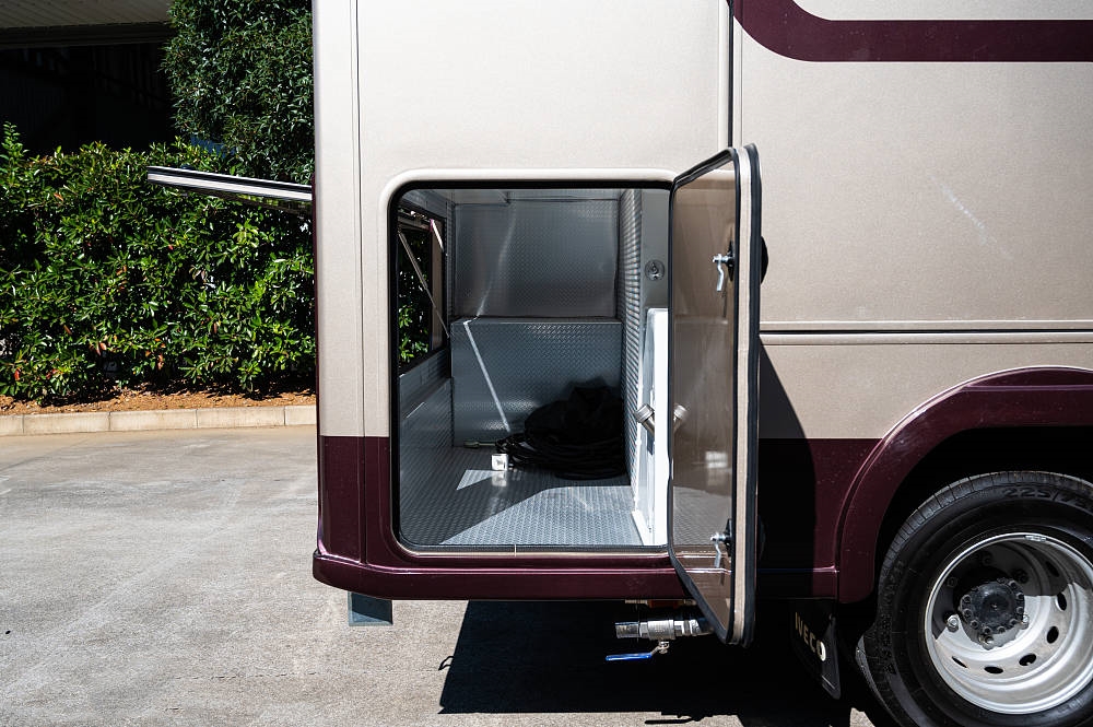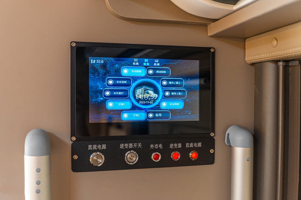 电力系统标配48V 5000w拓宝逆变一体机,48V 200AH锂电池组、国标新能源交流电接口以及后行车暖风系统;水路方面,自带300L清水箱、60L灰水箱、40L黑水箱和5000W燃油加热器,充足的带水量告别用水焦虑。