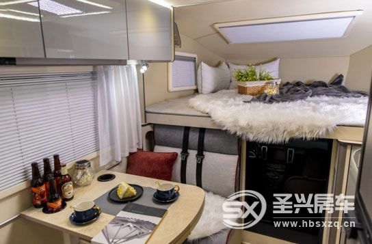 看看车厢内部的生活区域,皮卡房车的额头大床都比较宽敞,自由炮房车额头双人床尺寸为1700*1950mm,三人也能睡得下;会客区为四人对坐卡座,行驶中也需要系上安全带;厨房宽大程度是很多人想不到的,这样做或许更能适应国人对美食的需求,还有哪些配置更加实用,看到实车再做叙述。