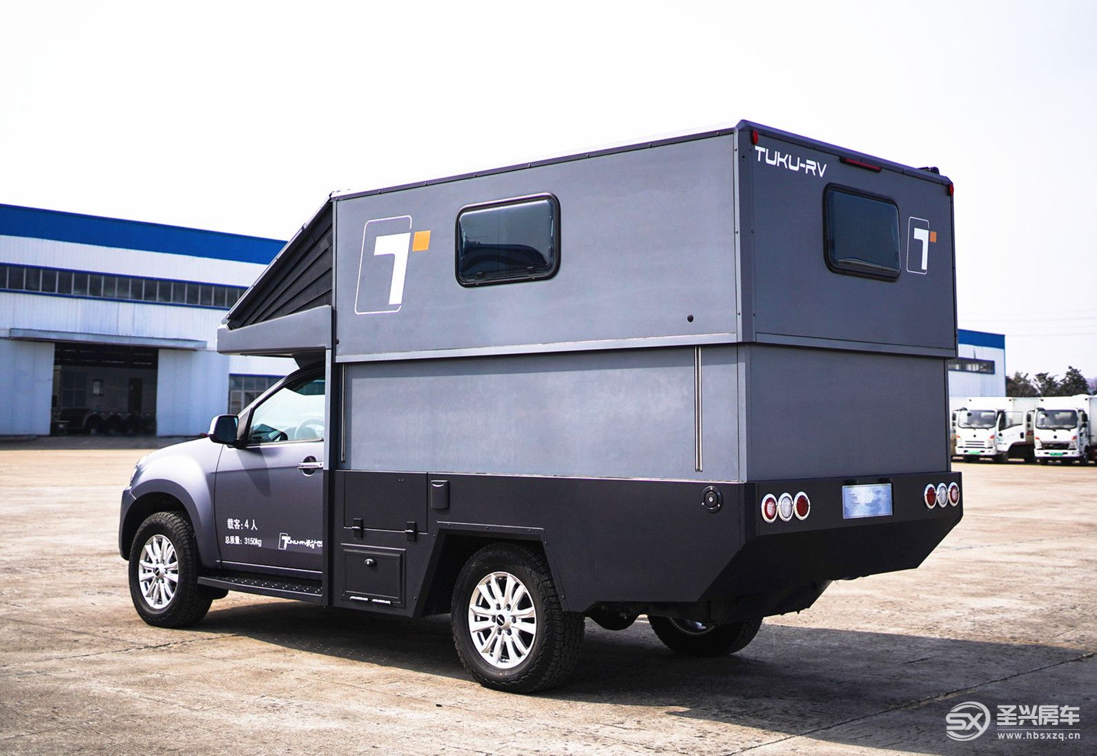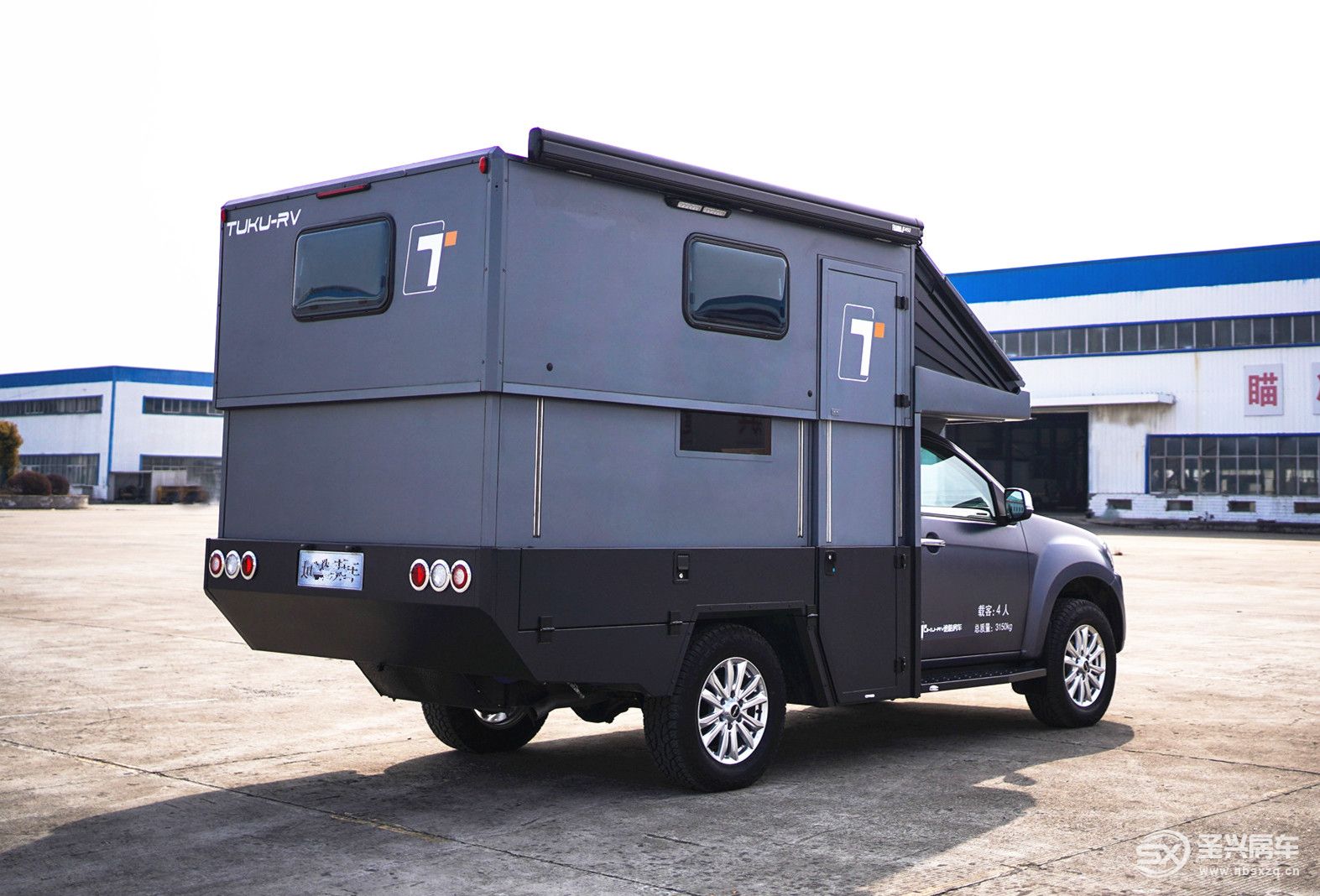 尾部两侧对称式分布有警示灯,可以起到警示后车的作用,防止发生安全事故;警示灯上方设有车窗,可以加强生活空间的通风效果。