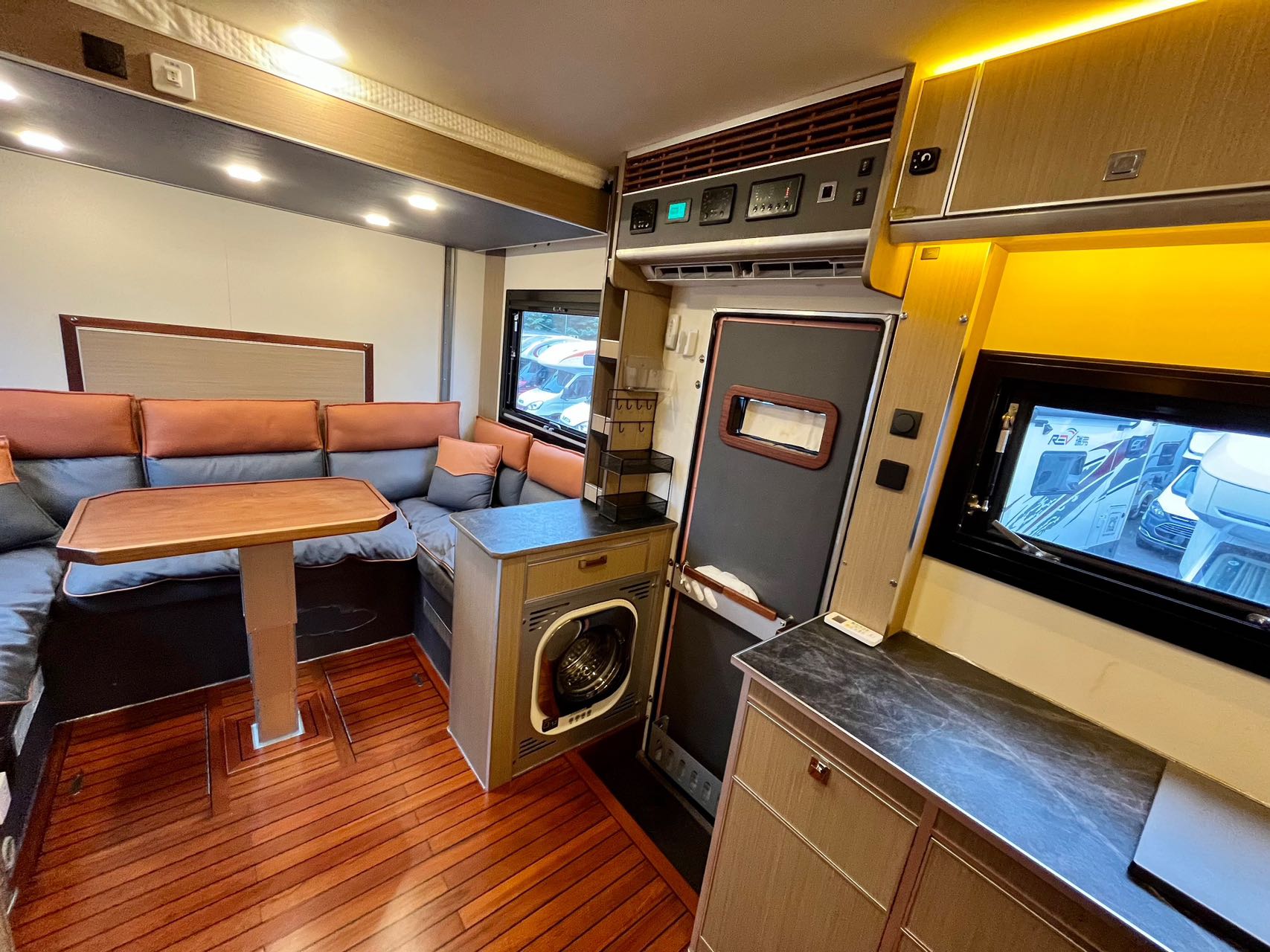 【电器配置】:韩国大宇3KG洗衣机,美的家用变频空调,集成灶具,嵌入式水池,152L房车专用冰箱,电热水器,燃油暖风