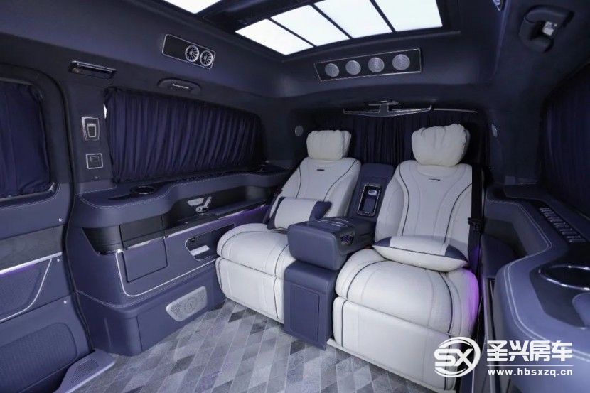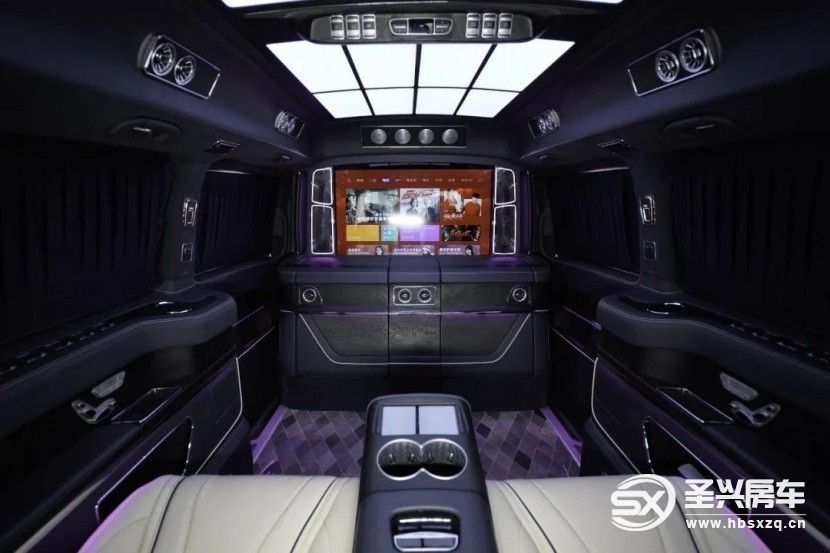 奔驰V260尊贵商务车的氛围感,或许你会因为舒适的第二排,忘记了周围的环境,而当你的目光向前排望去,才会发现奔驰V260尊贵商务车的氛围营造,也很无敌。吧台折叠座椅可以隐藏,和46英寸的升降电视共同构成隔断。这台MPV车型上,它依然能呈现出同级其它车型无可比拟的豪华感。