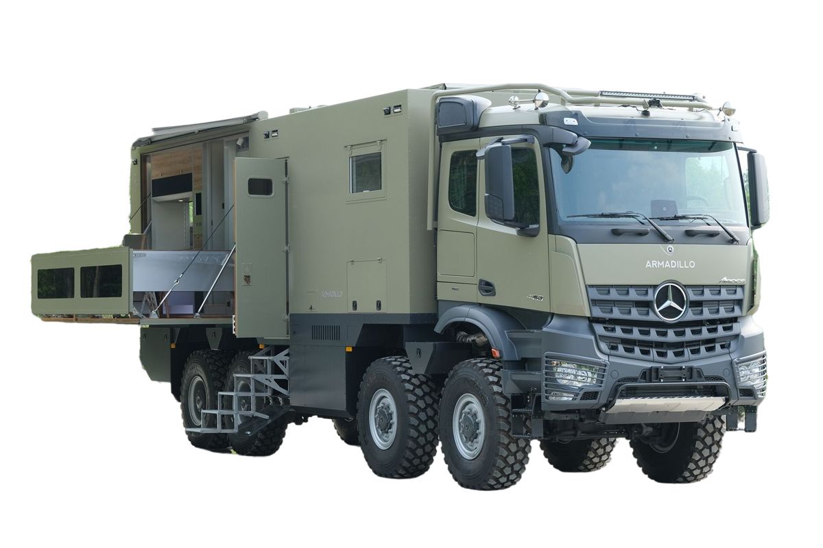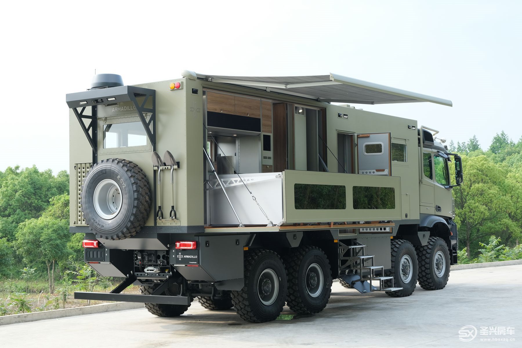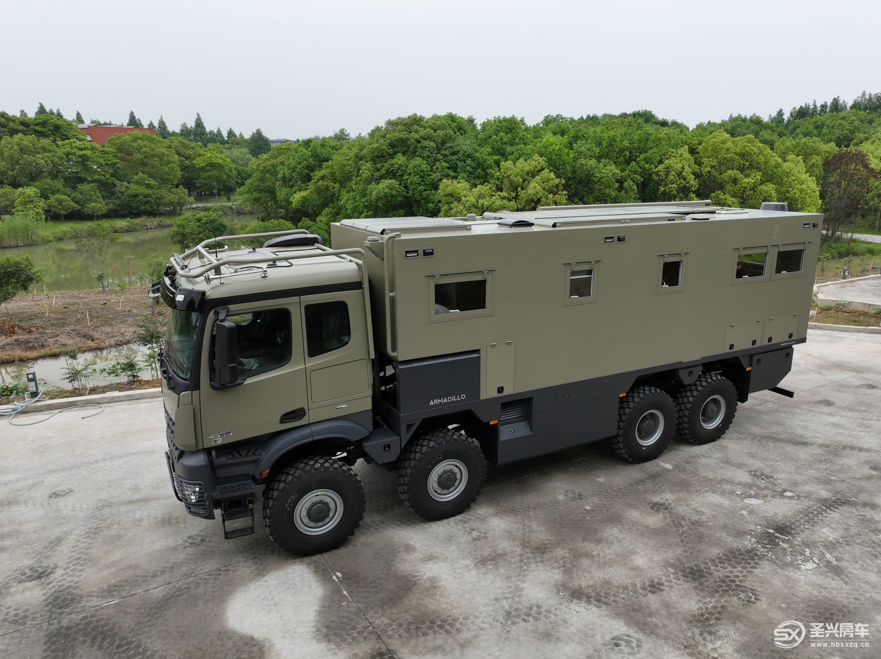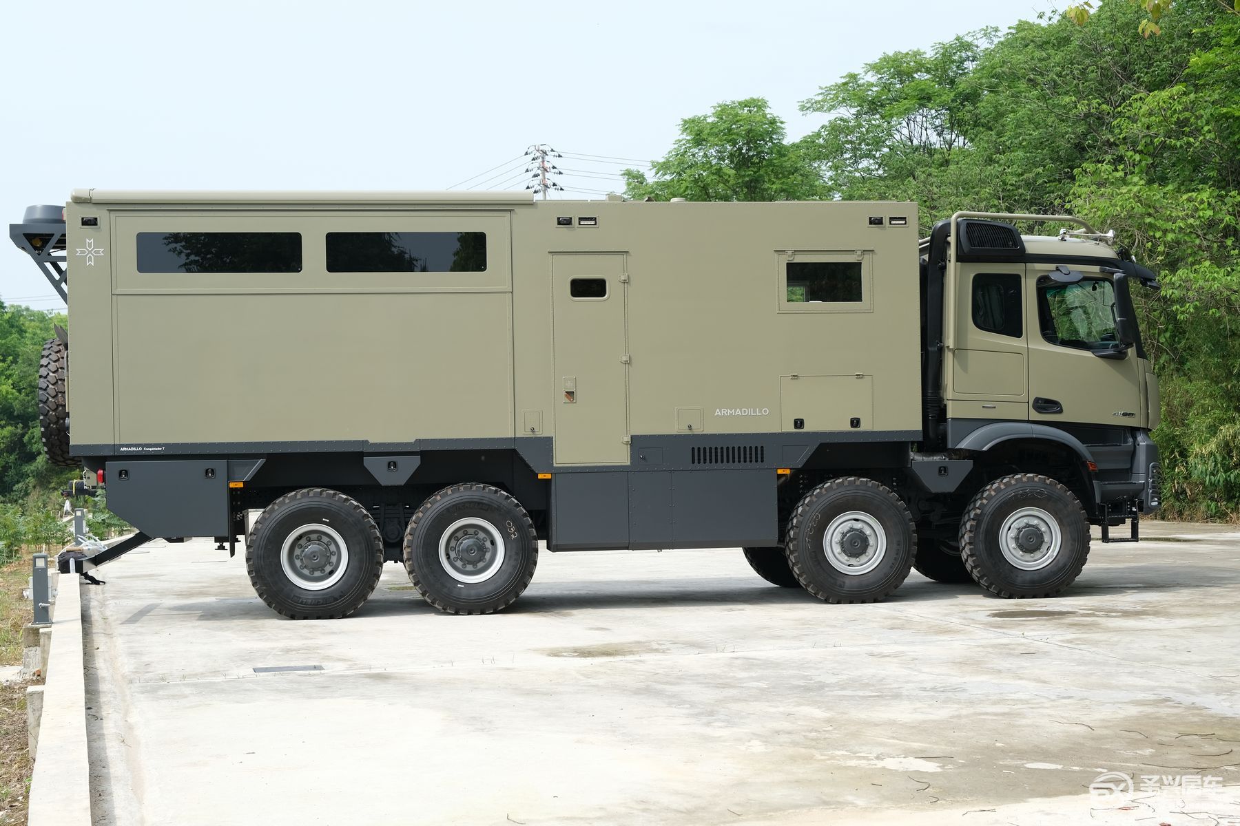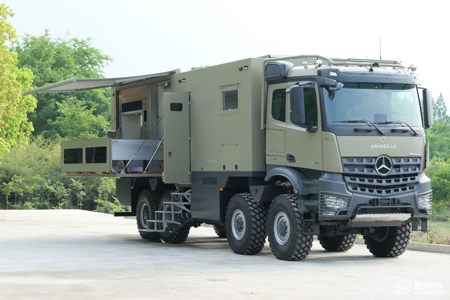 由于受到路途和物资的限制,很多人的自驾旅途走不远。也许很多人会途中选择入住酒店,但这样的方式并没有真正触摸到旅行的真谛。如果有一辆车,有床、沙发与空调供人休憩,有电视供人娱乐,可以洗热水澡还可以烹饪精致美餐,在恶劣的环境里不仅能保障基本的生活需求,还能给人一场完美的想停就停,想走就走的旅行。既是一个舒意行走的家,又能在自然里任意驰骋----奔驰征服者房车!