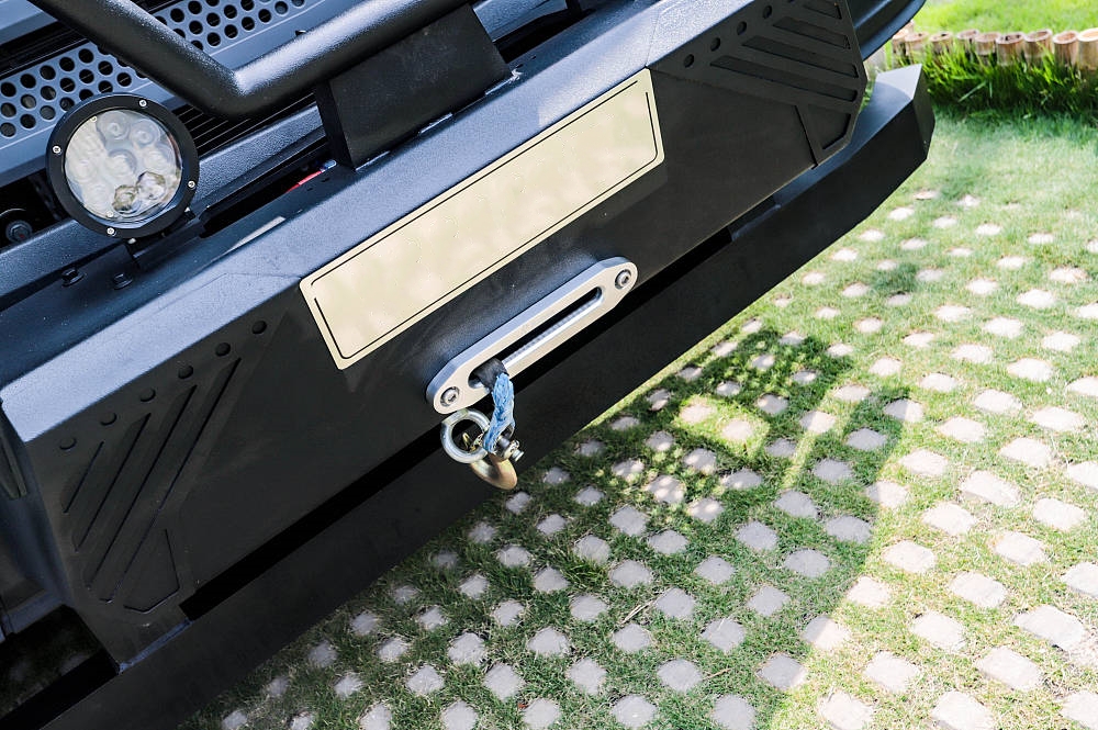 车头配置比较丰富,包括金属前保险杠、防滚架等等,可以给车内乘客更多安全感。丰富的照明灯架设在护杠上,夜间可提供充足照明效果。