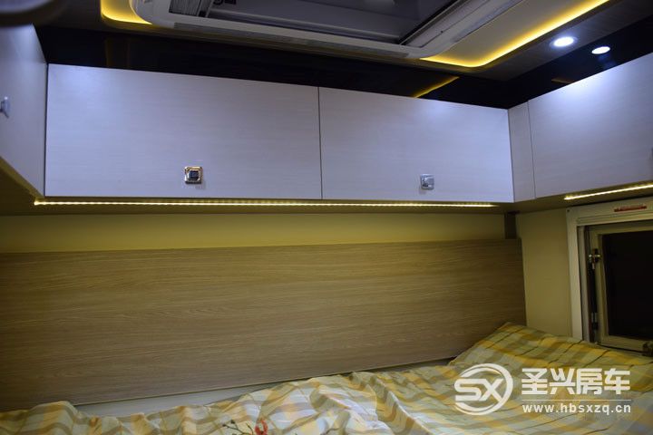 (尾部的卧室有一张大双人床,可同时供两名成年人休息。)